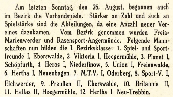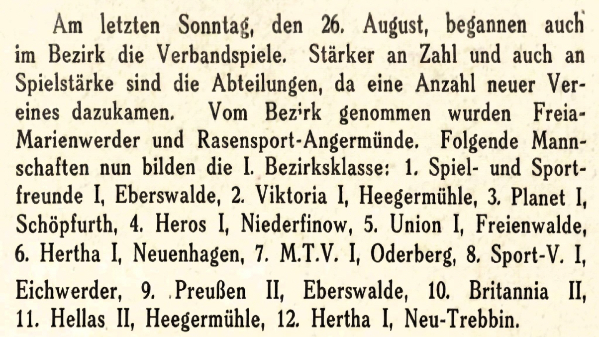 In der Saison (1928/29) wechselte man in den Bezirk Finowtal. Alle Spiele/Ergebnisse aus der Hinrunde konnten bisher recherchiert werden.