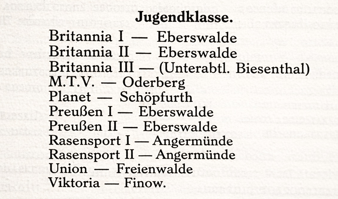 In der Saison 1928/29 spielt die Jugend des MTV Oderberg im Bezirk Finowtal.
