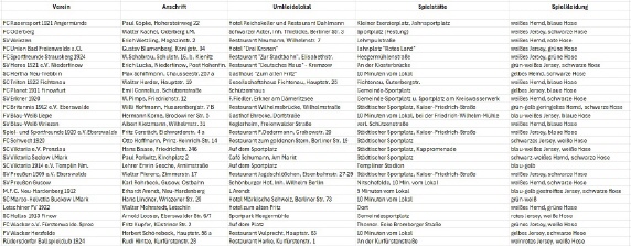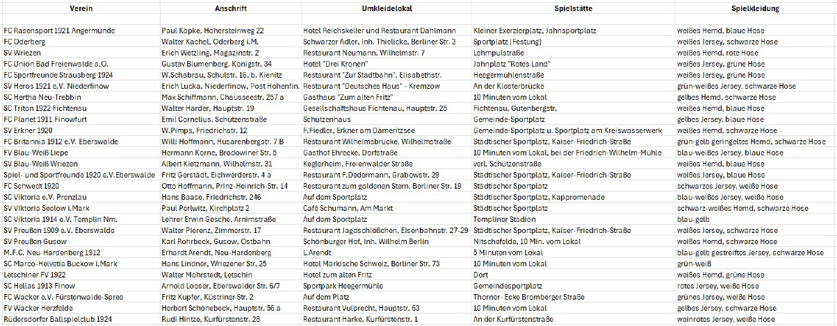 Aufstellung "Liste der Vereine" des Verbandes Brandenburgischer Ballspielvereine (VBB)Darstellung als Excel-Tabelle: KLICK [5 KB] Oder zum Vergrößern bitte Grafik anklicken!